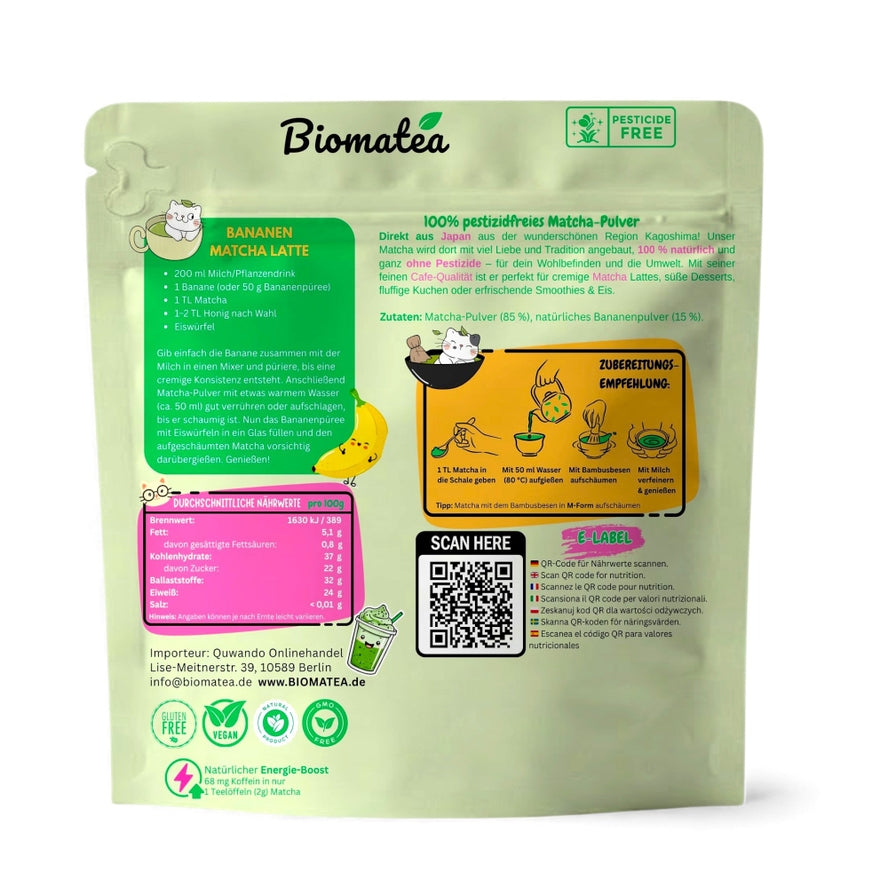 • 🍌 Sabor suave y equilibrado: matcha con un delicado toque natural de plátano.